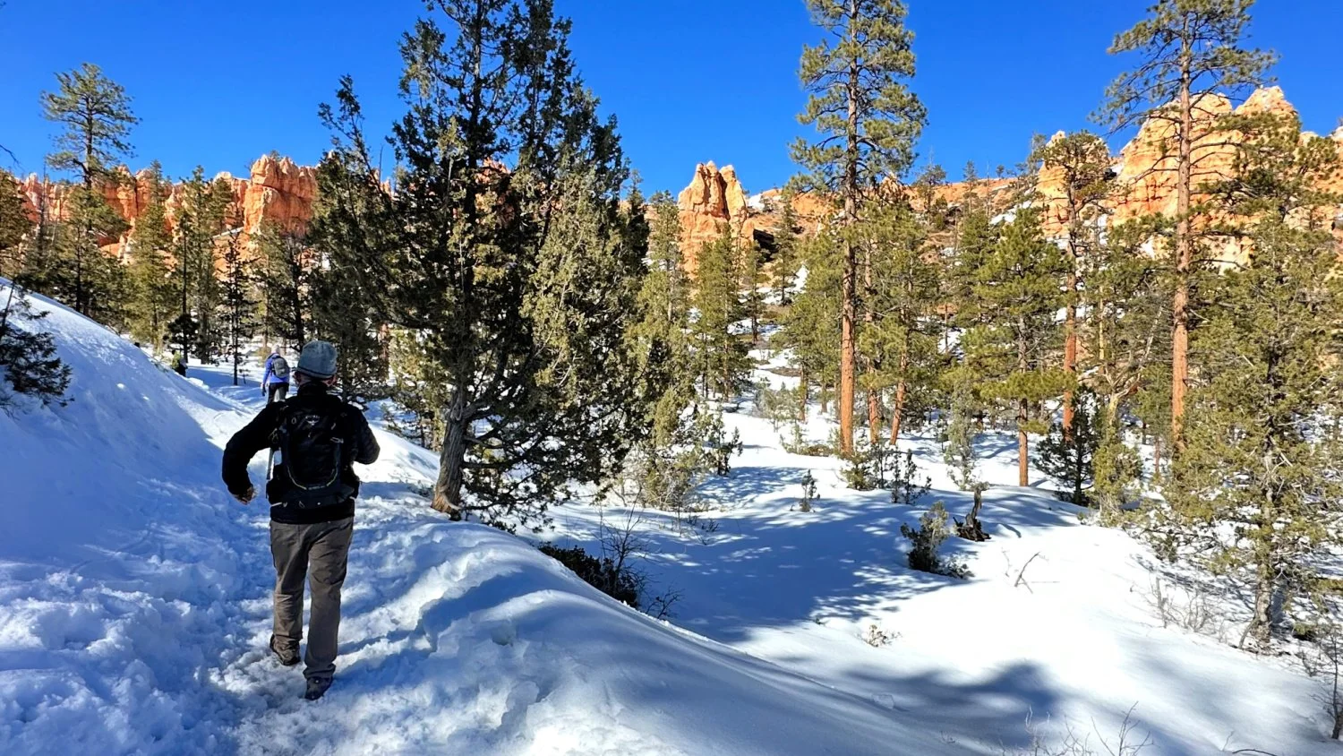 Enjoying a glorious winter day hiking Bryce Canyon.